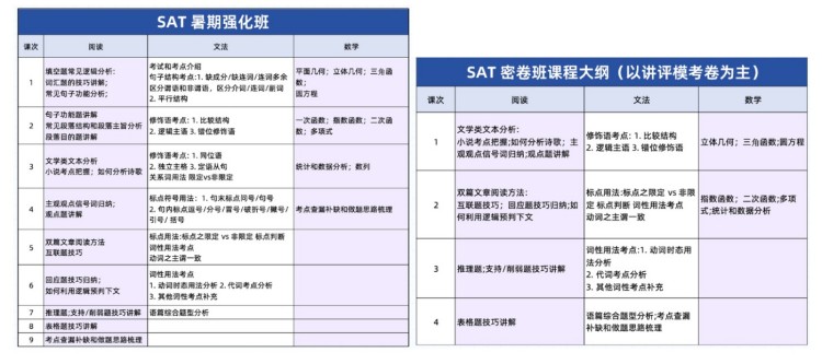 培训班型:SAT强化班、SAT冲分班、SAT密卷班